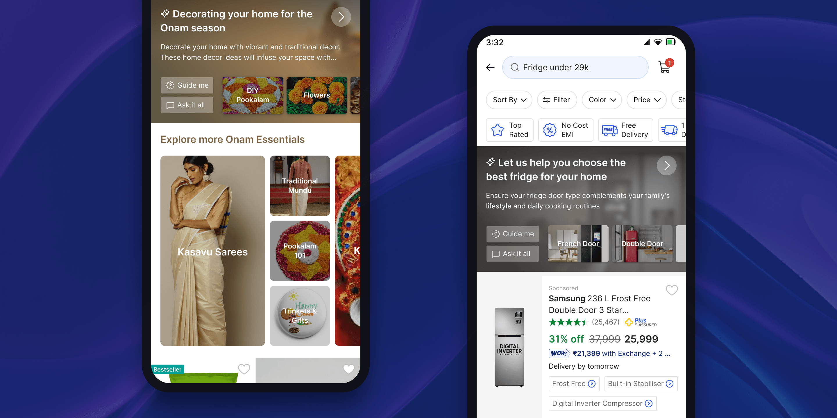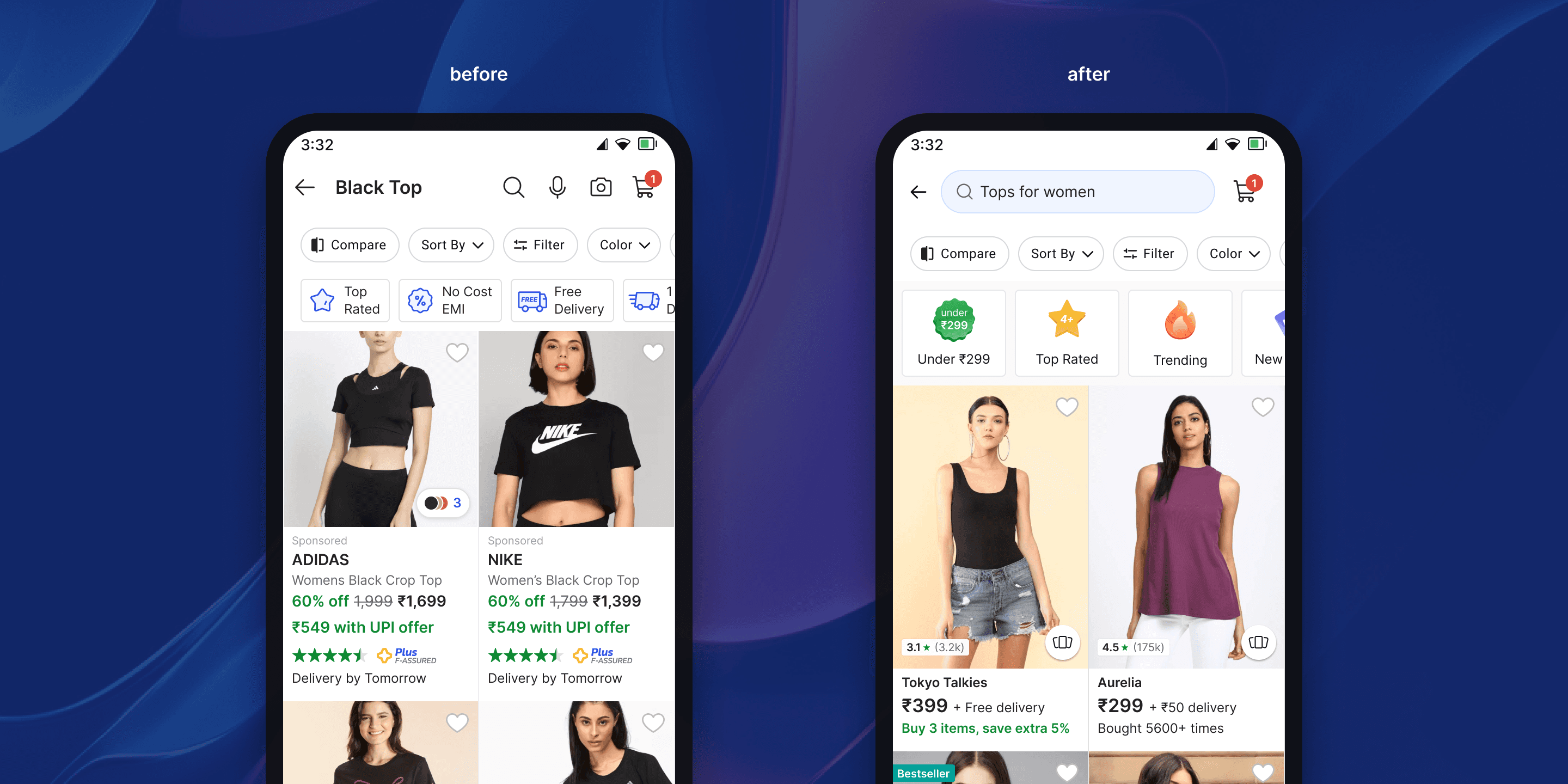 Designing for Flipkart’s vast platform required balancing diverse user needs with business goals. Each category had unique search behaviors, making a one-size-fits-all approach ineffective. Collaborating with UX researchers and PMs was crucial to extracting insights and translating them into intuitive designs. The UX research team provided detailed reports on user behavior, pain points, and conversion patterns, which informed design iterations. Their assistance with user testing and discovery sessions helped validate design decisions and refine the final experience.